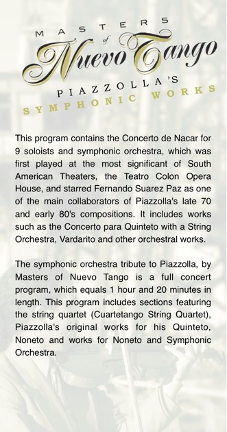 Masters of Nuevo Tango: Piazzolla’s Symphonic Works